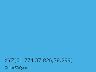 XYZ 31.774,37.826,78.299 Color is a normal blue color and the nearest color is Picton Blue #45b1e8. Hex code #44b0e3 and RGB value is rgb(68,176,227). In RGB color space, this color is composed of 27% red, 69% green, 89% blue, In CMYK color space, this color is composed of 70% cyan, 22% magenta, 0% yellow , 11% black , In HSL color space, this color has a hue angle of 199° , 74% saturation and 58% lightness.