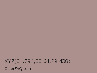 XYZ 31.794,30.64,29.438 Color is a light red color and the nearest color is Grullo #a99a86. Hex code #ac908d and RGB value is rgb(172,144,141). In RGB color space, this color is composed of 67% red, 56% green, 55% blue, In CMYK color space, this color is composed of 0% cyan, 16% magenta, 18% yellow , 33% black , In HSL color space, this color has a hue angle of 6° , 16% saturation and 61% lightness.
