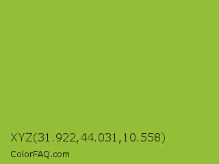 XYZ 31.922,44.031,10.558 Color is a normal lime color and the nearest color is Android Green #a4c639. Hex code #96bf38 and RGB value is rgb(150,191,56). In RGB color space, this color is composed of 59% red, 75% green, 22% blue, In CMYK color space, this color is composed of 21% cyan, 0% magenta, 71% yellow , 25% black , In HSL color space, this color has a hue angle of 78° , 55% saturation and 48% lightness.