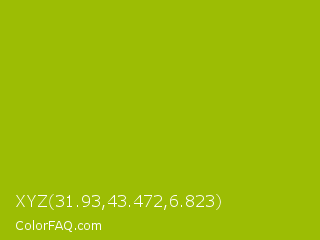XYZ 31.93,43.472,6.823 Color is a normal lime color and the nearest color is Pistachio Green #9dc209. Hex code #9cbd04 and RGB value is rgb(156,189,4). In RGB color space, this color is composed of 61% red, 74% green, 2% blue, In CMYK color space, this color is composed of 17% cyan, 0% magenta, 98% yellow , 26% black , In HSL color space, this color has a hue angle of 71° , 96% saturation and 38% lightness.