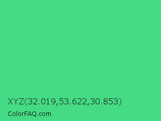 XYZ 32.019,53.622,30.853 Color is a normal green color and the nearest color is UFO Green #3cd070. Hex code #45db85 and RGB value is rgb(69,219,133). In RGB color space, this color is composed of 27% red, 86% green, 52% blue, In CMYK color space, this color is composed of 68% cyan, 0% magenta, 39% yellow , 14% black , In HSL color space, this color has a hue angle of 146° , 68% saturation and 56% lightness.