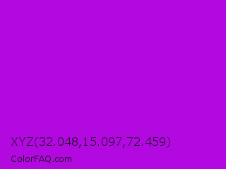 XYZ 32.048,15.097,72.459 Color is a normal purple color and the nearest color is Vivid Mulberry #b80ce3. Hex code #b209e1 and RGB value is rgb(178,9,225). In RGB color space, this color is composed of 70% red, 4% green, 88% blue, In CMYK color space, this color is composed of 21% cyan, 96% magenta, 0% yellow , 12% black , In HSL color space, this color has a hue angle of 287° , 92% saturation and 46% lightness.