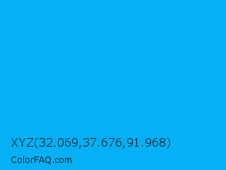 XYZ 32.069,37.676,91.968 Color is a normal blue color and the nearest color is Vivid Cerulean #00aaee. Hex code #05b0f5 and RGB value is rgb(5,176,245). In RGB color space, this color is composed of 2% red, 69% green, 96% blue, In CMYK color space, this color is composed of 98% cyan, 28% magenta, 0% yellow , 4% black , In HSL color space, this color has a hue angle of 197° , 96% saturation and 49% lightness.