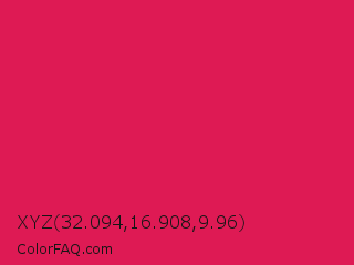 XYZ 32.094,16.908,9.96 Color is a normal rose color and the nearest color is Spanish Crimson #e51a4c. Hex code #de1a54 and RGB value is rgb(222,26,84). In RGB color space, this color is composed of 87% red, 10% green, 33% blue, In CMYK color space, this color is composed of 0% cyan, 88% magenta, 62% yellow , 13% black , In HSL color space, this color has a hue angle of 342° , 79% saturation and 49% lightness.