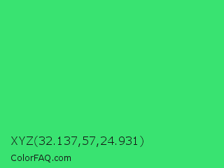XYZ 32.137,57,24.931 Color is a normal green color and the nearest color is UFO Green #3cd070. Hex code #39e371 and RGB value is rgb(57,227,113). In RGB color space, this color is composed of 22% red, 89% green, 44% blue, In CMYK color space, this color is composed of 75% cyan, 0% magenta, 50% yellow , 11% black , In HSL color space, this color has a hue angle of 140° , 75% saturation and 56% lightness.