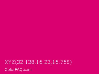 XYZ 32.138,16.23,16.768 Color is a normal rose color and the nearest color is Red Purple #e40078. Hex code #db0070 and RGB value is rgb(219,0,112). In RGB color space, this color is composed of 86% red, 0% green, 44% blue, In CMYK color space, this color is composed of 0% cyan, 100% magenta, 49% yellow , 14% black , In HSL color space, this color has a hue angle of 329° , 100% saturation and 43% lightness.