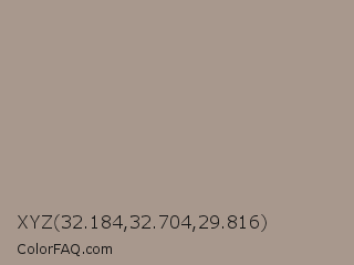 XYZ 32.184,32.704,29.816 Color is a light orange color and the nearest color is Zorba #a59b91. Hex code #a8988d and RGB value is rgb(168,152,141). In RGB color space, this color is composed of 66% red, 60% green, 55% blue, In CMYK color space, this color is composed of 0% cyan, 10% magenta, 16% yellow , 34% black , In HSL color space, this color has a hue angle of 24° , 13% saturation and 61% lightness.
