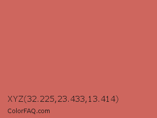 XYZ 32.225,23.433,13.414 Color is a normal red color and the nearest color is Fuzzy Wuzzy #cc6666. Hex code #ce665e and RGB value is rgb(206,102,94). In RGB color space, this color is composed of 81% red, 40% green, 37% blue, In CMYK color space, this color is composed of 0% cyan, 50% magenta, 54% yellow , 19% black , In HSL color space, this color has a hue angle of 4° , 53% saturation and 59% lightness.