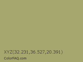 XYZ 32.231,36.527,20.391 Color is a normal yellow color and the nearest color is Green Smoke #a4af6e. Hex code #a6a66f and RGB value is rgb(166,166,111). In RGB color space, this color is composed of 65% red, 65% green, 44% blue, In CMYK color space, this color is composed of 0% cyan, 0% magenta, 33% yellow , 35% black , In HSL color space, this color has a hue angle of 60° , 24% saturation and 54% lightness.