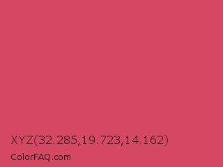 XYZ 32.285,19.723,14.162 Color is a normal red color and the nearest color is Cabaret #d94972. Hex code #d64764 and RGB value is rgb(214,71,100). In RGB color space, this color is composed of 84% red, 28% green, 39% blue, In CMYK color space, this color is composed of 0% cyan, 67% magenta, 53% yellow , 16% black , In HSL color space, this color has a hue angle of 348° , 64% saturation and 56% lightness.