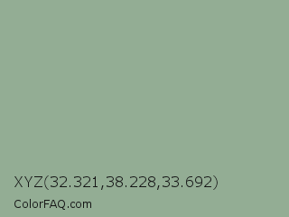 XYZ 32.321,38.228,33.692 Color is a light green color and the nearest color is Envy #8ba690. Hex code #93ad94 and RGB value is rgb(147,173,148). In RGB color space, this color is composed of 58% red, 68% green, 58% blue, In CMYK color space, this color is composed of 15% cyan, 0% magenta, 14% yellow , 32% black , In HSL color space, this color has a hue angle of 122° , 14% saturation and 63% lightness.
