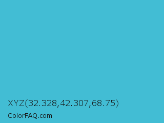 XYZ 32.328,42.307,68.75 Color is a normal cyan color and the nearest color is Sea Serpent #4bc7cf. Hex code #42bdd4 and RGB value is rgb(66,189,212). In RGB color space, this color is composed of 26% red, 74% green, 83% blue, In CMYK color space, this color is composed of 69% cyan, 11% magenta, 0% yellow , 17% black , In HSL color space, this color has a hue angle of 189° , 63% saturation and 55% lightness.