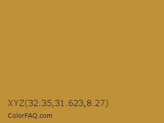 XYZ 32.35,31.623,8.27 Color is a normal orange color and the nearest color is Marigold #b98d28. Hex code #bf9139 and RGB value is rgb(191,145,57). In RGB color space, this color is composed of 75% red, 57% green, 22% blue, In CMYK color space, this color is composed of 0% cyan, 24% magenta, 70% yellow , 25% black , In HSL color space, this color has a hue angle of 39° , 54% saturation and 49% lightness.