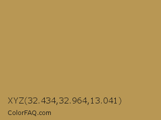 XYZ 32.434,32.964,13.041 Color is a normal orange color and the nearest color is Aztec Gold #c39953. Hex code #b89754 and RGB value is rgb(184,151,84). In RGB color space, this color is composed of 72% red, 59% green, 33% blue, In CMYK color space, this color is composed of 0% cyan, 18% magenta, 54% yellow , 28% black , In HSL color space, this color has a hue angle of 40° , 41% saturation and 53% lightness.