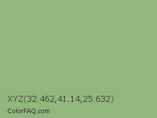 XYZ 32.462,41.14,25.632 Color is a normal green color and the nearest color is Olivine #9ab973. Hex code #93b67d and RGB value is rgb(147,182,125). In RGB color space, this color is composed of 58% red, 71% green, 49% blue, In CMYK color space, this color is composed of 19% cyan, 0% magenta, 31% yellow , 29% black , In HSL color space, this color has a hue angle of 97° , 28% saturation and 60% lightness.