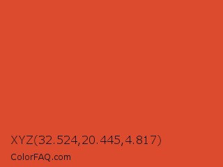 XYZ 32.524,20.445,4.817 Color is a normal red color and the nearest color is Punch #dc4333. Hex code #dc4b2e and RGB value is rgb(220,75,46). In RGB color space, this color is composed of 86% red, 29% green, 18% blue, In CMYK color space, this color is composed of 0% cyan, 66% magenta, 79% yellow , 14% black , In HSL color space, this color has a hue angle of 10° , 71% saturation and 52% lightness.