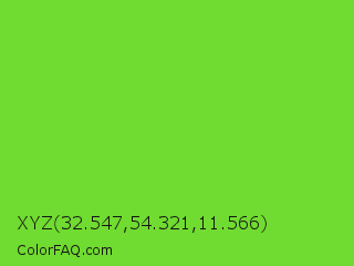 XYZ 32.547,54.321,11.566 Color is a normal green color and the nearest color is Kiwi #8ee53f. Hex code #70db30 and RGB value is rgb(112,219,48). In RGB color space, this color is composed of 44% red, 86% green, 19% blue, In CMYK color space, this color is composed of 49% cyan, 0% magenta, 78% yellow , 14% black , In HSL color space, this color has a hue angle of 98° , 70% saturation and 52% lightness.