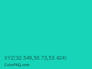 XYZ 32.549,50.73,53.424 Color is a normal cyan color and the nearest color is Java #1fc2c2. Hex code #17d4b8 and RGB value is rgb(23,212,184). In RGB color space, this color is composed of 9% red, 83% green, 72% blue, In CMYK color space, this color is composed of 89% cyan, 0% magenta, 13% yellow , 17% black , In HSL color space, this color has a hue angle of 171° , 80% saturation and 46% lightness.