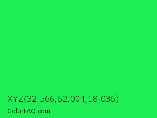 XYZ 32.566,62.004,18.036 Color is a normal green color and the nearest color is Malachite #0bda51. Hex code #1dee51 and RGB value is rgb(29,238,81). In RGB color space, this color is composed of 11% red, 93% green, 32% blue, In CMYK color space, this color is composed of 88% cyan, 0% magenta, 66% yellow , 7% black , In HSL color space, this color has a hue angle of 135° , 86% saturation and 52% lightness.