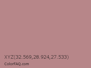 XYZ 32.569,28.924,27.533 Color is a light red color and the nearest color is Brandy Rose #bb8983. Hex code #b78689 and RGB value is rgb(183,134,137). In RGB color space, this color is composed of 72% red, 53% green, 54% blue, In CMYK color space, this color is composed of 0% cyan, 27% magenta, 25% yellow , 28% black , In HSL color space, this color has a hue angle of 356° , 25% saturation and 62% lightness.