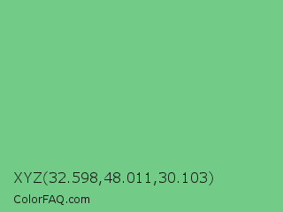 XYZ 32.598,48.011,30.103 Color is a light green color and the nearest color is De York #7ac488. Hex code #72cb86 and RGB value is rgb(114,203,134). In RGB color space, this color is composed of 45% red, 80% green, 53% blue, In CMYK color space, this color is composed of 44% cyan, 0% magenta, 34% yellow , 20% black , In HSL color space, this color has a hue angle of 133° , 46% saturation and 62% lightness.