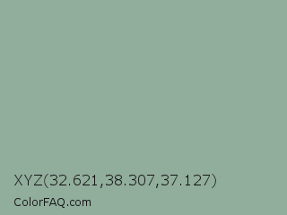 XYZ 32.621,38.307,37.127 Color is a light green color and the nearest color is Pewter #96a8a1. Hex code #91ad9c and RGB value is rgb(145,173,156). In RGB color space, this color is composed of 57% red, 68% green, 61% blue, In CMYK color space, this color is composed of 16% cyan, 0% magenta, 10% yellow , 32% black , In HSL color space, this color has a hue angle of 144° , 15% saturation and 62% lightness.