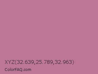XYZ 32.639,25.789,32.963 Color is a normal rose color and the nearest color is English Lavender #b48395. Hex code #bb7698 and RGB value is rgb(187,118,152). In RGB color space, this color is composed of 73% red, 46% green, 60% blue, In CMYK color space, this color is composed of 0% cyan, 37% magenta, 19% yellow , 27% black , In HSL color space, this color has a hue angle of 330° , 34% saturation and 60% lightness.