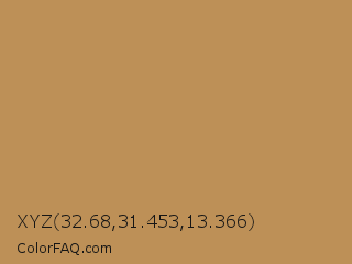 XYZ 32.68,31.453,13.366 Color is a normal orange color and the nearest color is Muddy Waters #b78e5c. Hex code #bd9057 and RGB value is rgb(189,144,87). In RGB color space, this color is composed of 74% red, 56% green, 34% blue, In CMYK color space, this color is composed of 0% cyan, 24% magenta, 54% yellow , 26% black , In HSL color space, this color has a hue angle of 34° , 44% saturation and 54% lightness.