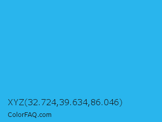 XYZ 32.724,39.634,86.046 Color is a normal blue color and the nearest color is Button Blue #24a0ed. Hex code #29b5ed and RGB value is rgb(41,181,237). In RGB color space, this color is composed of 16% red, 71% green, 93% blue, In CMYK color space, this color is composed of 83% cyan, 24% magenta, 0% yellow , 7% black , In HSL color space, this color has a hue angle of 197° , 84% saturation and 55% lightness.