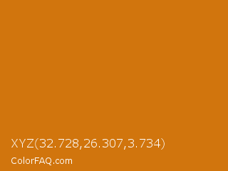 XYZ 32.728,26.307,3.734 Color is a normal orange color and the nearest color is Meteor #d07d12. Hex code #d1750d and RGB value is rgb(209,117,13). In RGB color space, this color is composed of 82% red, 46% green, 5% blue, In CMYK color space, this color is composed of 0% cyan, 44% magenta, 94% yellow , 18% black , In HSL color space, this color has a hue angle of 32° , 88% saturation and 44% lightness.