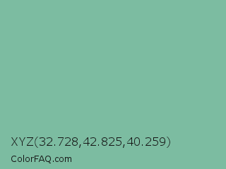XYZ 32.728,42.825,40.259 Color is a light green color and the nearest color is Acapulco #7cb0a1. Hex code #7cbca1 and RGB value is rgb(124,188,161). In RGB color space, this color is composed of 49% red, 74% green, 63% blue, In CMYK color space, this color is composed of 34% cyan, 0% magenta, 14% yellow , 26% black , In HSL color space, this color has a hue angle of 155° , 32% saturation and 61% lightness.
