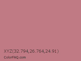 XYZ 32.794,26.764,24.91 Color is a light red color and the nearest color is Old Rose #c08081. Hex code #c07a83 and RGB value is rgb(192,122,131). In RGB color space, this color is composed of 75% red, 48% green, 51% blue, In CMYK color space, this color is composed of 0% cyan, 36% magenta, 32% yellow , 25% black , In HSL color space, this color has a hue angle of 352° , 36% saturation and 62% lightness.