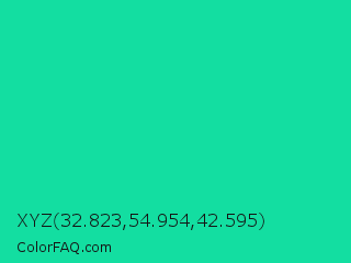 XYZ 32.823,54.954,42.595 Color is a normal green color and the nearest color is Caribbean Green #00cc99. Hex code #13dea1 and RGB value is rgb(19,222,161). In RGB color space, this color is composed of 7% red, 87% green, 63% blue, In CMYK color space, this color is composed of 91% cyan, 0% magenta, 27% yellow , 13% black , In HSL color space, this color has a hue angle of 162° , 84% saturation and 47% lightness.