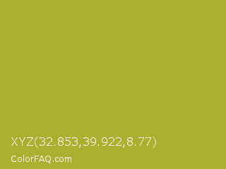 XYZ 32.853,39.922,8.77 Color is a normal yellow color and the nearest color is Citron #9fa91f. Hex code #abb030 and RGB value is rgb(171,176,48). In RGB color space, this color is composed of 67% red, 69% green, 19% blue, In CMYK color space, this color is composed of 3% cyan, 0% magenta, 73% yellow , 31% black , In HSL color space, this color has a hue angle of 62° , 57% saturation and 44% lightness.