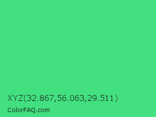 XYZ 32.867,56.063,29.511 Color is a normal green color and the nearest color is UFO Green #3cd070. Hex code #43e080 and RGB value is rgb(67,224,128). In RGB color space, this color is composed of 26% red, 88% green, 50% blue, In CMYK color space, this color is composed of 70% cyan, 0% magenta, 43% yellow , 12% black , In HSL color space, this color has a hue angle of 143° , 72% saturation and 57% lightness.