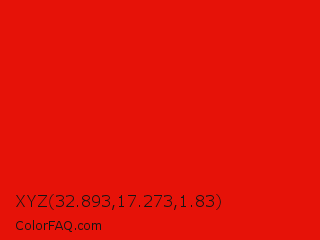 XYZ 32.893,17.273,1.83 Color is a normal red color and the nearest color is KU Crimson #e8000d. Hex code #e61208 and RGB value is rgb(230,18,8). In RGB color space, this color is composed of 90% red, 7% green, 3% blue, In CMYK color space, this color is composed of 0% cyan, 92% magenta, 97% yellow , 10% black , In HSL color space, this color has a hue angle of 3° , 93% saturation and 47% lightness.