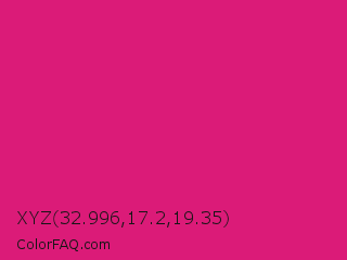 XYZ 32.996,17.2,19.35 Color is a normal rose color and the nearest color is Vivid Cerise #da1d81. Hex code #db1b78 and RGB value is rgb(219,27,120). In RGB color space, this color is composed of 86% red, 11% green, 47% blue, In CMYK color space, this color is composed of 0% cyan, 88% magenta, 45% yellow , 14% black , In HSL color space, this color has a hue angle of 331° , 78% saturation and 48% lightness.