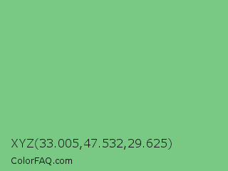 XYZ 33.005,47.532,29.625 Color is a light green color and the nearest color is De York #7ac488. Hex code #79c985 and RGB value is rgb(121,201,133). In RGB color space, this color is composed of 47% red, 79% green, 52% blue, In CMYK color space, this color is composed of 40% cyan, 0% magenta, 34% yellow , 21% black , In HSL color space, this color has a hue angle of 129° , 43% saturation and 63% lightness.