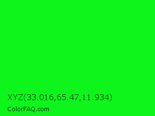 XYZ 33.016,65.47,11.934 Color is a normal green color and the nearest color is Green #00ff00. Hex code #0df51b and RGB value is rgb(13,245,27). In RGB color space, this color is composed of 5% red, 96% green, 11% blue, In CMYK color space, this color is composed of 95% cyan, 0% magenta, 89% yellow , 4% black , In HSL color space, this color has a hue angle of 124° , 92% saturation and 51% lightness.