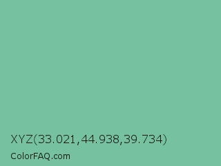 XYZ 33.021,44.938,39.734 Color is a light green color and the nearest color is Acapulco #7cb0a1. Hex code #76c29f and RGB value is rgb(118,194,159). In RGB color space, this color is composed of 46% red, 76% green, 62% blue, In CMYK color space, this color is composed of 39% cyan, 0% magenta, 18% yellow , 24% black , In HSL color space, this color has a hue angle of 152° , 38% saturation and 61% lightness.