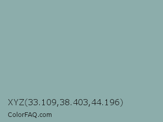 XYZ 33.109,38.403,44.196 Color is a light cyan color and the nearest color is Cascade #8ba9a5. Hex code #8cadab and RGB value is rgb(140,173,171). In RGB color space, this color is composed of 55% red, 68% green, 67% blue, In CMYK color space, this color is composed of 19% cyan, 0% magenta, 1% yellow , 32% black , In HSL color space, this color has a hue angle of 176° , 17% saturation and 61% lightness.