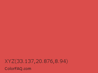 XYZ 33.137,20.876,8.94 Color is a normal red color and the nearest color is English Vermillion #cc474b. Hex code #db4d4b and RGB value is rgb(219,77,75). In RGB color space, this color is composed of 86% red, 30% green, 29% blue, In CMYK color space, this color is composed of 0% cyan, 65% magenta, 66% yellow , 14% black , In HSL color space, this color has a hue angle of 1° , 67% saturation and 58% lightness.