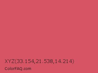 XYZ 33.154,21.538,14.214 Color is a normal red color and the nearest color is Mandy #e25465. Hex code #d65463 and RGB value is rgb(214,84,99). In RGB color space, this color is composed of 84% red, 33% green, 39% blue, In CMYK color space, this color is composed of 0% cyan, 61% magenta, 54% yellow , 16% black , In HSL color space, this color has a hue angle of 353° , 61% saturation and 58% lightness.