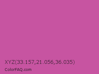 XYZ 33.157,21.056,36.035 Color is a normal magenta color and the nearest color is Mulberry #c54b8c. Hex code #c754a1 and RGB value is rgb(199,84,161). In RGB color space, this color is composed of 78% red, 33% green, 63% blue, In CMYK color space, this color is composed of 0% cyan, 58% magenta, 19% yellow , 22% black , In HSL color space, this color has a hue angle of 320° , 51% saturation and 55% lightness.