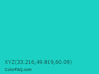 XYZ 33.216,49.819,60.09 Color is a normal cyan color and the nearest color is Java #1fc2c2. Hex code #1bd1c4 and RGB value is rgb(27,209,196). In RGB color space, this color is composed of 11% red, 82% green, 77% blue, In CMYK color space, this color is composed of 87% cyan, 0% magenta, 6% yellow , 18% black , In HSL color space, this color has a hue angle of 176° , 77% saturation and 46% lightness.