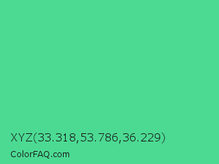 XYZ 33.318,53.786,36.229 Color is a normal green color and the nearest color is Eucalyptus #44d7a8. Hex code #4cda93 and RGB value is rgb(76,218,147). In RGB color space, this color is composed of 30% red, 85% green, 58% blue, In CMYK color space, this color is composed of 65% cyan, 0% magenta, 33% yellow , 15% black , In HSL color space, this color has a hue angle of 150° , 66% saturation and 58% lightness.