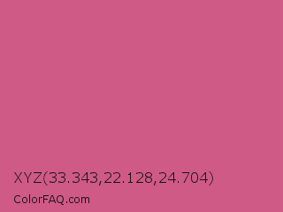 XYZ 33.343,22.128,24.704 Color is a normal rose color and the nearest color is Cinnamon Satin #cd607e. Hex code #ce5a85 and RGB value is rgb(206,90,133). In RGB color space, this color is composed of 81% red, 35% green, 52% blue, In CMYK color space, this color is composed of 0% cyan, 56% magenta, 35% yellow , 19% black , In HSL color space, this color has a hue angle of 338° , 54% saturation and 58% lightness.