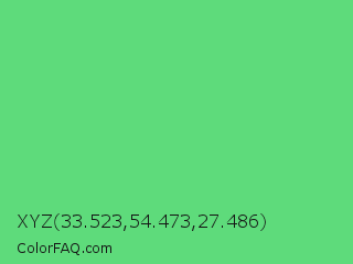 XYZ 33.523,54.473,27.486 Color is a light green color and the nearest color is Very Light Malachite Green #64e986. Hex code #5edb7b and RGB value is rgb(94,219,123). In RGB color space, this color is composed of 37% red, 86% green, 48% blue, In CMYK color space, this color is composed of 57% cyan, 0% magenta, 44% yellow , 14% black , In HSL color space, this color has a hue angle of 134° , 63% saturation and 61% lightness.