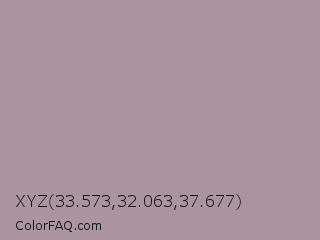 XYZ 33.573,32.063,37.677 Color is a light rose color and the nearest color is Dusty Gray #a8989b. Hex code #ab93a0 and RGB value is rgb(171,147,160). In RGB color space, this color is composed of 67% red, 58% green, 63% blue, In CMYK color space, this color is composed of 0% cyan, 14% magenta, 6% yellow , 33% black , In HSL color space, this color has a hue angle of 328° , 13% saturation and 62% lightness.
