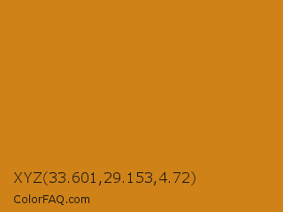 XYZ 33.601,29.153,4.72 Color is a normal orange color and the nearest color is Meteor #d07d12. Hex code #ce8218 and RGB value is rgb(206,130,24). In RGB color space, this color is composed of 81% red, 51% green, 9% blue, In CMYK color space, this color is composed of 0% cyan, 37% magenta, 88% yellow , 19% black , In HSL color space, this color has a hue angle of 35° , 79% saturation and 45% lightness.